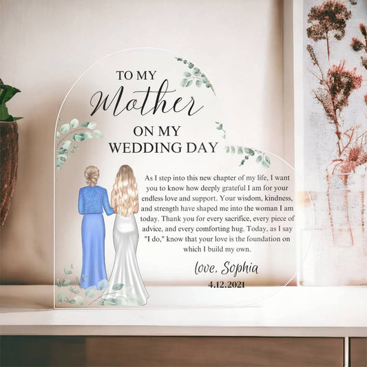 To My Mother On My Wedding | Personalized Heart Acrylic Plaque | Wedding Gift