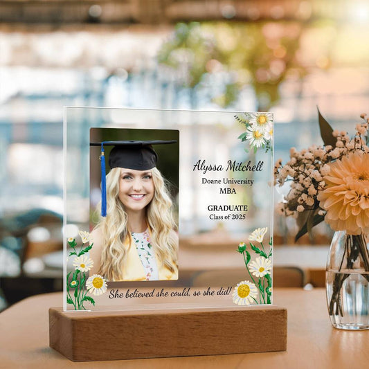 Personalized Lighted Acrylic Graduation Plaque – Custom Photo & Name for Her
