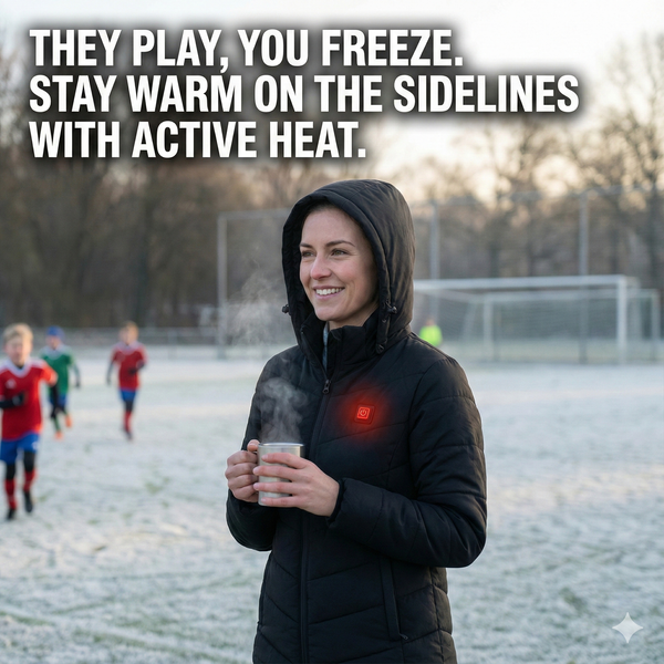 Tap once and feel targeted warmth across chest and arms in 30 seconds. Stay cozy during school runs, train waits, or stroller walks without bulky layers slowing you down.